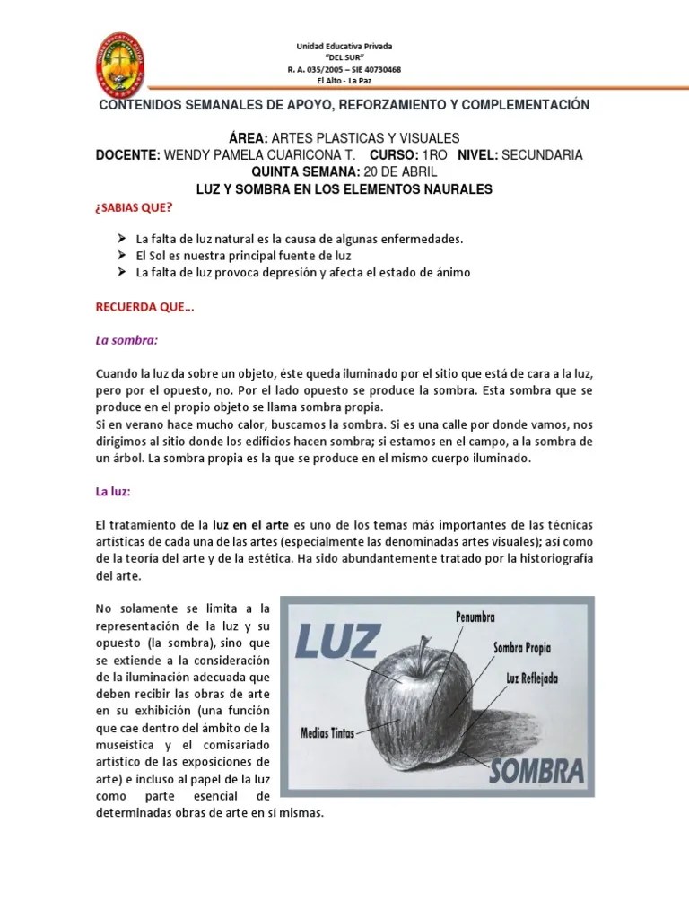 Volumen, luz y sombra en todos los objetos que nos rodean, las zonas de luz y sombra son las. Crear trabajos visuales a partir de intereses personales, experimentando con materiales sustentables en dibujo, pintura y escultura. La luz se define como la clase de energía radiante que estimula los órganos de la visión... Guia 2 de artes visuales 7° a y b nombre: